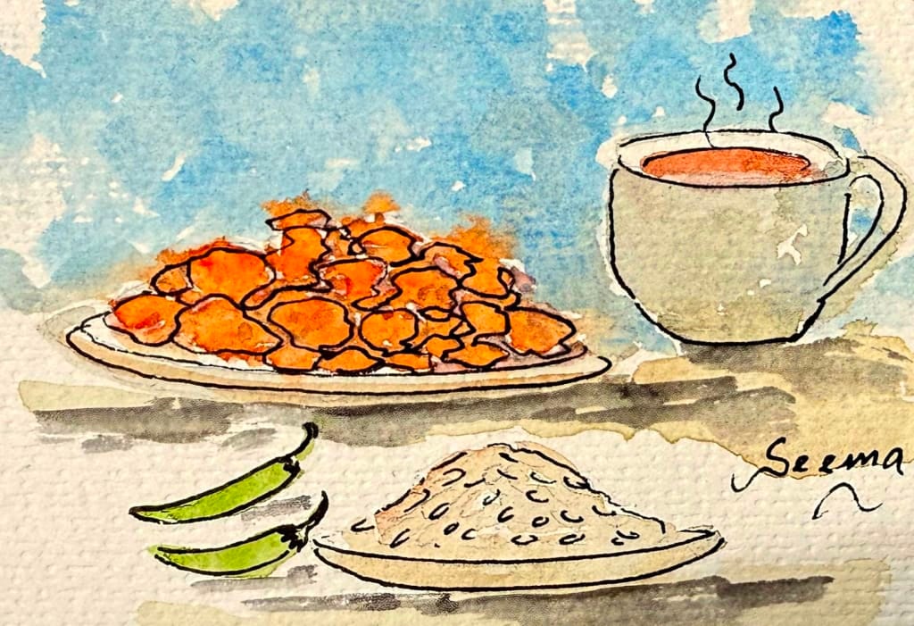 crispy pakoras, puffed rice,